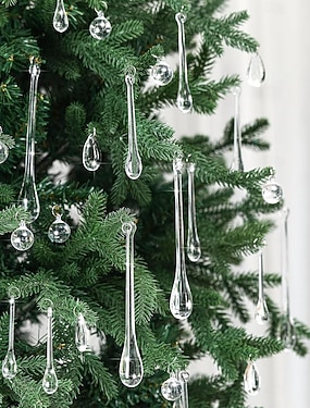 100 kpl joulukuusenkoristeita, kirkkaita akryylisiä roikkuvia pisaranmuotoisia koristeita, 5 tyyliä, joulukristalli kattokruunu, riipuskristalleja keskikappaleisiin, kattokruunu, hääkoristeet (kirkas)