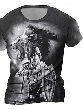 Miesten Leijona T-paita Lyhythihainen T-paita 3D-tulostus Tiukka pyöreä kaula-aukko Pyöreä kaula-aukko Paita Liioiteltu Suunnittelija Juhla Katu Kausaliteetti Musta 1 Musta Rubiini Kesä Kevät Kaikki