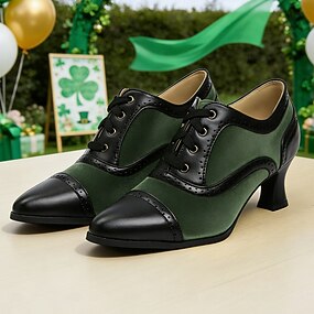 naisten vihreät oxford-kengät Pyhän Patrickin päivän kunniaksi - vintage-tyyliset nauhalliset lohkokorkoiset juhlakengät juhlallisiin juhliin ja paraateihin
