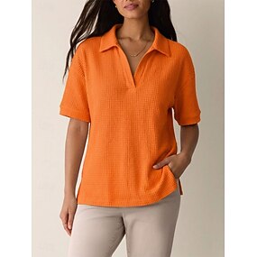 Naisten T-paita Poolopaidat Vohvelineuletoppit Tavallinen Muoti Tyylikäs Perus Lyhythihainen Paitapuserokaula-aukko Tavalliset topit Päivittäin Bile Viikonloppu Sininen Musta Valkoinen Oranssi Apila