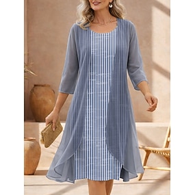 Naisten Midimekko Rento mekko Mekkosetti Tyylikäs Muoti Moderni ulko- Loma Bile Normaali Pallokuosi 3/4 hiha Tiukka pyöreä kaula-aukko Punastuvan vaaleanpunainen Purppura Ruskea Apila Kesä Kevät Syksy