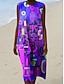 Naisten Midi Mekko Pellavanomainen Siirrosmekko Loma Rentoutumiseen Ranta Päivittäin Ulkona Tavanomainen Fit Graafinen Geometrinen Hihaton Pyöreä Kaula Sininen Keltainen Purppura Oranssi Kesä Kevät