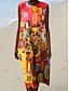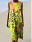 Naisten Midimekko Kesämekko Väljä mekko Loma Vapaa-aika Rantatyyliä Hiekkaranta Bile Loose Fit Kuvitettu Geometrinen Hihaton Pyöreäkauluksinen Vaalean keltainen Oranssi Apila Kesä Kevät