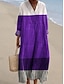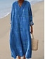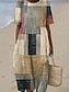 Naisten maksimekko pellavankaltaista hengittävää kevyttä kaftaania 3/4 pituisilla hihoilla pyöreä pääntie rentoa suoremekkoa boho päivittäin lomapäiväksi graafista geometriaa keltainen sininen