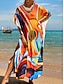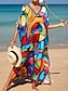 Naisten Maksimekko Kesämekko Väljä mekko Loma Vapaa-aika Hiekkaranta Bile Loose Fit Kuvitettu Geometrinen Abstrakti Pitkähihainen V kaula-aukko Keltainen Oranssi Tumman sininen Kesä Kevät Syksy
