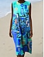 Naisten Midimekko Väljä mekko Kesämekko A linjainen mekko Loma Vapaa-aika Boheemi Hiekkaranta Bile Loose Fit Kuvitettu Geometrinen Hihaton Pyöreäkauluksinen Sininen Kesä Kevät