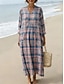 Naisten Maksimekko Paitamekko Rento mekko Muoti Perus Moderni Päivittäin ulko- Hiekkaranta Normaali Geometrinen Skottiruutukuvio 3/4 hiha V kaula-aukko Sininen Kesä Kevät