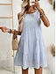 Naisten Mini mekko Kesämekko Vapaa-aika Päivittäin Loose Fit Skottiruutukuvio Hihaton Tiukka pyöreä kaula-aukko Sininen Vaalea vaaleanpunainen Musta Valkoinen Kesä Kevät