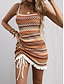Naisten Midimekko A linjainen mekko Loma Vapaa-aika ulko- Bile Normaali istuvuus Geometrinen Hihaton Riipuskaula Khaki Kesä Kevät