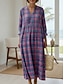 Naisten Midimekko Väljä mekko Rento mekko Vintage Päivittäin ulko- Loma Loose Fit Skottiruutukuvio Pitkähihainen V kaula-aukko Sininen Purppura Apila Kesä Kevät Syksy