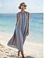 Naisten Mini mekko Kesämekko Loma Vapaa-aika Boheemi Päivittäin Hiekkaranta Loose Fit Kuvitettu Raidoitettu Lyhythihainen Kauluskäänne Sininen Kesä Kevät