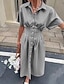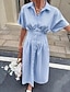 Naisten Midimekko Rento mekko A linjainen mekko Tyylikäs Hiekkaranta Normaali Kuvitettu Raita Lyhythihainen Paitapuserokaula-aukko Sininen Keltainen Punastuvan vaaleanpunainen Harmaa Kesä Kevät