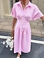 Naisten Mini mekko Paitamekko Rento mekko Tyylikäs Muoti Moderni ulko- Loma Bile Normaali Raidoitettu Lyhythihainen Paitapuserokaula-aukko Punastuvan vaaleanpunainen Kesä Kevät