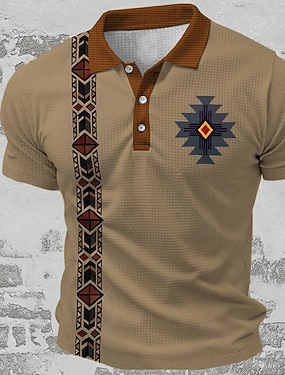 Miesten Geometrinen Atsteekki Etninen Paita Länsimainen paita Cowboy paita Pitkähihainen Vintage retro ulko- Retkeily ja vaellus Metsästys Kevät Syksy Sänkyjen avaus 3D-tulostus Napitettavat paidat