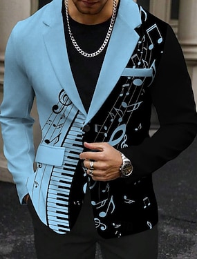 Miesten Musiikki Huomautuksia Paita Button Up paita Pitkähihainen Muoti Suunnittelija Vapaa-aika Loma Päivittäin Bile Syksy Kevät kesä Stand-kaula-aukko Painettu Musta Keltainen Sininen Purppura Apila