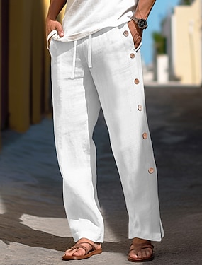 Miesten Paita Pellava paita Viikinki tyyli Kesä paita Ranta-asut Yhtenäinen väri Loma Katu Valkoinen Oranssi Apila Vaalean sininen Pitkähihainen Kaulukseton Vaatetus