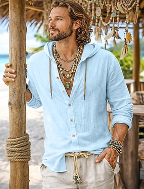 Miesten Paita Pellava paita Ranta-asut Button Up paita Hupullinen paita Tavallinen Kausaliteetti Päivittäin Musta Valkoinen Khaki Armeijan vihreä Pitkähihainen Hupullinen Kesä Kevät kesä Vaatetus
