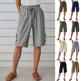 Naisten Bermudan shortsit Puuvillaiset pellavashortsit Shortsit Kesähousut Loma Muoti Rento arki Polven pituus Korka vyötärö Yhtenäinen väri Tavallinen Kurenauha Tasku Elastinen vyötärönauha Mukavuus