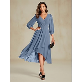 Naisten Mini mekko Coctail-asu Häävieraspuku Sifonki Sifonki Mekko Muoti Moderni ulko- Loma Normaali Tavallinen 3/4 hiha V kaula-aukko Apila Kesä Kevät Syksy