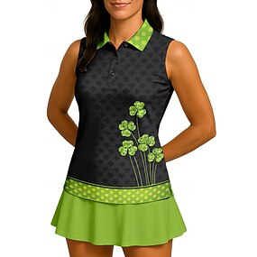 Pyhä Patrick Naisten תלתן Yläosat Urheilupaita Poolopaita Tankkitoppi Hihaton Kukka-aihe Napit UPF50+ UV-vastustuskykyinen Erittäin elastinen Kosteuden siirtävä Hengittävä Lentopallo Tennis Golf