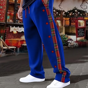 Miesten Veryttelyhousut Leveälahkeiset collegehousut Housut Rennot housut Suorat lenkkeilyhousut Kurenauha Tasku Joustava vyötärö Skottiruutukuvio Mukavuus Pehmeä Joulu Päivittäin Pyhäpäivä Muoti