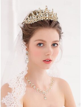 kimalteleva timantti tiara kruunu ja kaulakoru setti – kullatut morsiamen korut korvakoruilla, täydelliset häihin, messuihin ja erikoistilaisuuksiin
