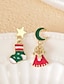 juhlavat joulukorvakorut, joissa on vihreä sukka, tähti, puolikuu ja juhlamekko