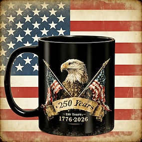 amerikkalainen 250-vuotisjuhlan keraaminen kahvimuki, 11,2/15,2 unssin keraaminen muki kahville, teelle, maidolle, vedelle, ihanteellinen lahja isänmaallisiksi lahjoiksi, 1776-2026 muistoisänmaallinen