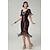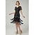 Setti Retro / vintage Möly 20s 1920-luku Polvipituinen Mekko Coctail-asu Hieno puku lisävarusteiden kanssa Lyhyet hihat Suuri Gatsby Flapper tyttö Paljetti Tupsu V kaula-aukko Naamiaispuku Naisten