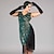 Retro / vintage Möly 20s 1920-luku Polvipituinen Mekko Lyhyet hihat Suuri Gatsby Paljetti Hapsut V kaula-aukko Naamiaispuku Naisten Joulu Karnevaali Naamiaiset Retro-teemaiset juhlat Charlestonin