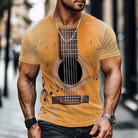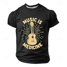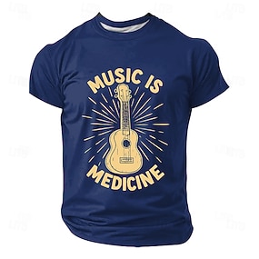 Miesten Kitara Hauska slangi T-paita Lyhythihainen T-paita 3D-tulostus Tiukka pyöreä kaula-aukko Paita Muoti Päivittäin Päivittäin Katu Sininen Musta Rubiini Kesä Kevät Vaatetus S M L XL XXL XXXL