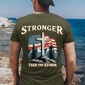 Amerikan 250-vuotisjuhla Miesten Risti veteraanit kristillinen T-paita Lyhythihainen T-paita 3D-tulostus Tiukka pyöreä kaula-aukko Paita Uskonto Patriotismi Kausaliteetti Päivittäin Juhla Musta 1