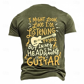 miesten akustisen kitaran nuotit saatan näyttää siltä kuin kuuntelisin sinua, mutta päässäni soitan kitaraani hauska sarkastinen muusikko t-paita graafinen lyhythihainen pyöreä kaula-aukkoinen rento