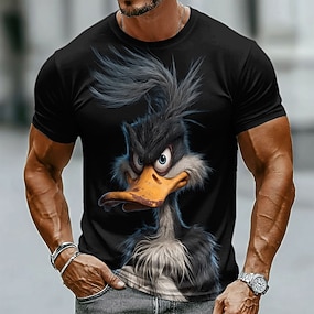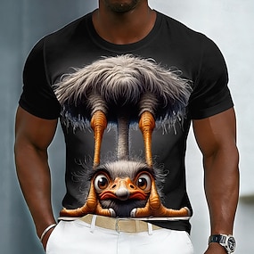 hauska strutsi 3D-graafinen miesten t-paita cgi-animoitu eläinkuvio omituinen humoristinen lyhythihainen pyöreä kaula-aukkoinen musta rento t-paita ainutlaatuinen lahja miehille suunnittelijavaatteet