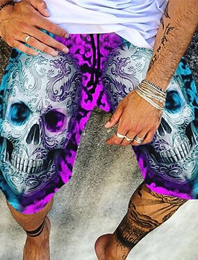 Miesten Kuvitettu Pääkallot Shortsit Kesähousut Rantahousut Keskivyötärö Muoti Vapaa-aika Urheilu ja ulkoilu Päivittäin Painettu Joustava kiristysnauhan suunnittelu Suunnittelija Vaatetus