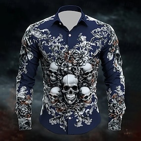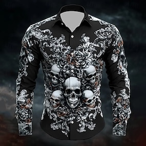Miesten Pääkallot Kuolleiden päivä Ruusu Paita Button Up paita Rento kauluspaita Pitkähihainen Dark Punk Gothic Pyhäpäivä Kesä Kevät Sänkyjen avaus 3D-tulostus kauluspaidat Valkoinen