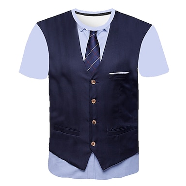 Miesten Kuvitettu Abstrakti 3D T-paita Lyhythihainen T-paita Pyöreä kaula-aukko Paita Katutyyli Liiketoiminta Työ Bile Musta Viini Laivaston sininen Vaatetus S M L XL 2XL 3XL 4XL