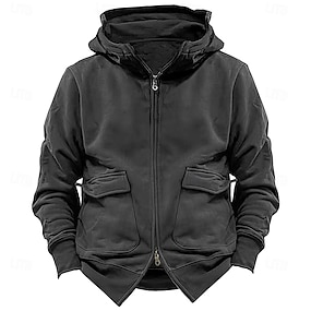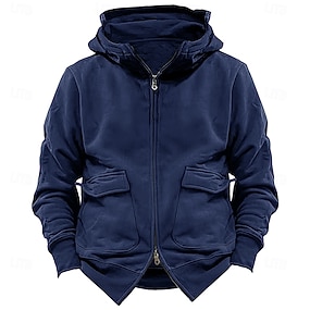 Miesten Huppari Täysi vetoketjullinen huppari Sherpa Linen Armeijan vihreä Sininen Ruskea Harmaa Hupullinen Tavallinen Tasku Urheilu ja ulkoilu Päivittäin Pyhäpäivä Polyesteri Vintage Katutyyli