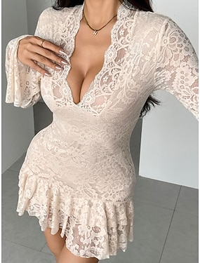 Naisten Pitkä mekko Maxi mekko Mini mekko Pitsimekko Rento mekko Peplum Mekot Muoti Romanttinen Moderni Päivittäin Loma Juhla Normaali Tavallinen Pitkähihainen V kaula-aukko Aprikoosi Kesä Kevät Syksy