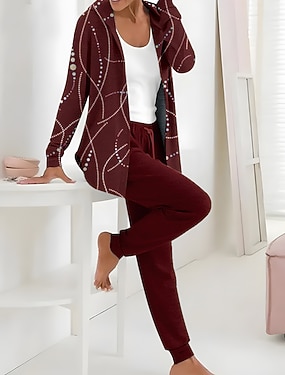 Naisten Huppari Verryttelypuku Housusarjat Pitkähihainen Pyöreä kaula-aukko Hupullinen Ombre Kukka Kurenauha Painettu Aktiivinen Päivittäin Kausaliteetti ulko- Musta Valkoinen Syksy Normaali