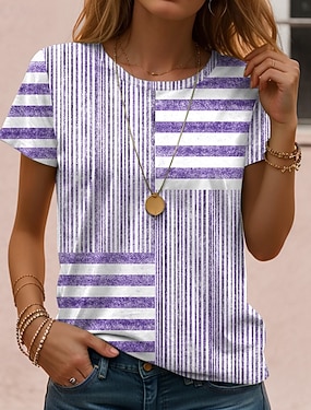 Naisten T-paita Pitkällä Hihalla Crew Neck Pitkähiha Tunika Grafiikka Geometrinen Raidallinen Elegantti Vintage Säännölliset Paidat Päivittäinen Iltamenot Viikonloppu Printti Vaaleanpunainen Sininen