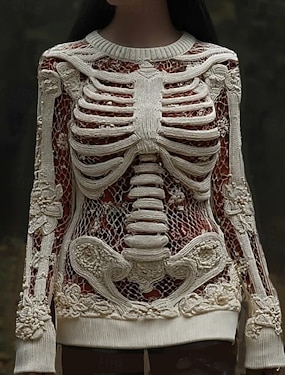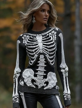 Halloween-naisten neulekjerroin Kallo Söpö Katumuoti Rentoa Graafinen Kallo Pyöreä Kaula Patches Neulottu Pitkähihaiset Tavalliset Paidat NeulottuPunainen Oranssi Syksy Talvi