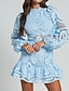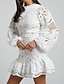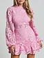 Naisten Mini mekko Musta mekko Pitsimekko Leikkaa mekko Kotelomekko Muoti Moderni Mesh Sleeve Lyhtyhiha Toimisto Bile Normaali Kukka Pitkähihainen Stand-kaula-aukko Musta Valkoinen Punastuvan