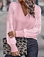 Naisten Pitsiliitostoppi Pusero Tavallinen Tyylikäs Vintage Pitkähihainen V kaula-aukko Tavalliset topit Päivittäin Pyhäpäivä Bile Pitsi Rypytetty Tilkkutäkki Musta Valkoinen Keltainen Punastuvan