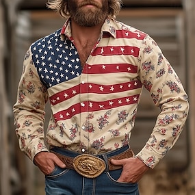 Miesten Yhdysvaltain 250-vuotisjuhla 4. heinäkuuta Risti Yhdysvaltain lippu Paita Button Up paita Pitkähihainen Patriotismi Pyhäpäivä Rento / arki Kevät Syksy Sänkyjen avaus 3D-tulostus Pellava kuin