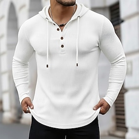 Miesten T-paita Ribbineulos T-paita Pitkähihainen paita Pitkähihainen Hupullinen Henley Kevät Syksy Talvi Tavallinen Pintakäsitelty Pit Strip Muoti Suunnittelija Perus Neulominen Loma Katu