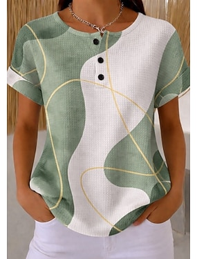 Naisten waffle-teksturoidut neulepuserot T-paita ombre graafinen geometria tyylikäs klassinen lyhythihainen crew-kaula-aukko Henley säännölliset puserot päivittäiseen urheiluun musta ja valkoinen