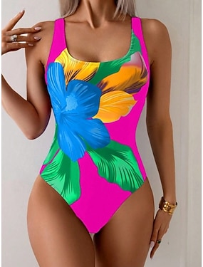 Naisten Uima-asut Yksi kappale Alushousut Uimapuku Ranta-asut Kesä Kukka Kuvitettu U kaula-aukko Hihaton Uimapuvut
