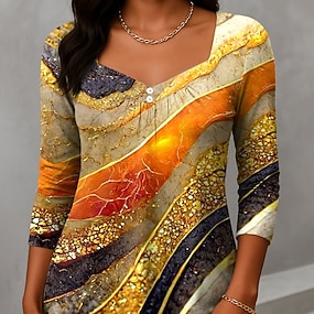 Naisten T-paita Pitkähihainen Pyöreä kaula pitkä tunika Graafinen Geometrinen Abstract Tyylikäs Vintage Normaalit paidat Päivittäinen Printti Vaaleanpunainen Sininen Violetti Vihreä Esikausi