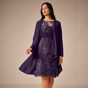 Naisten Pitsimekko Sifonki Pitsi Rypytetty Tiukka pyöreä kaula-aukko Pitkähihainen Polvipituinen mekko Cocktailjuhla Tyylikäs Sininen Kesä Kevät